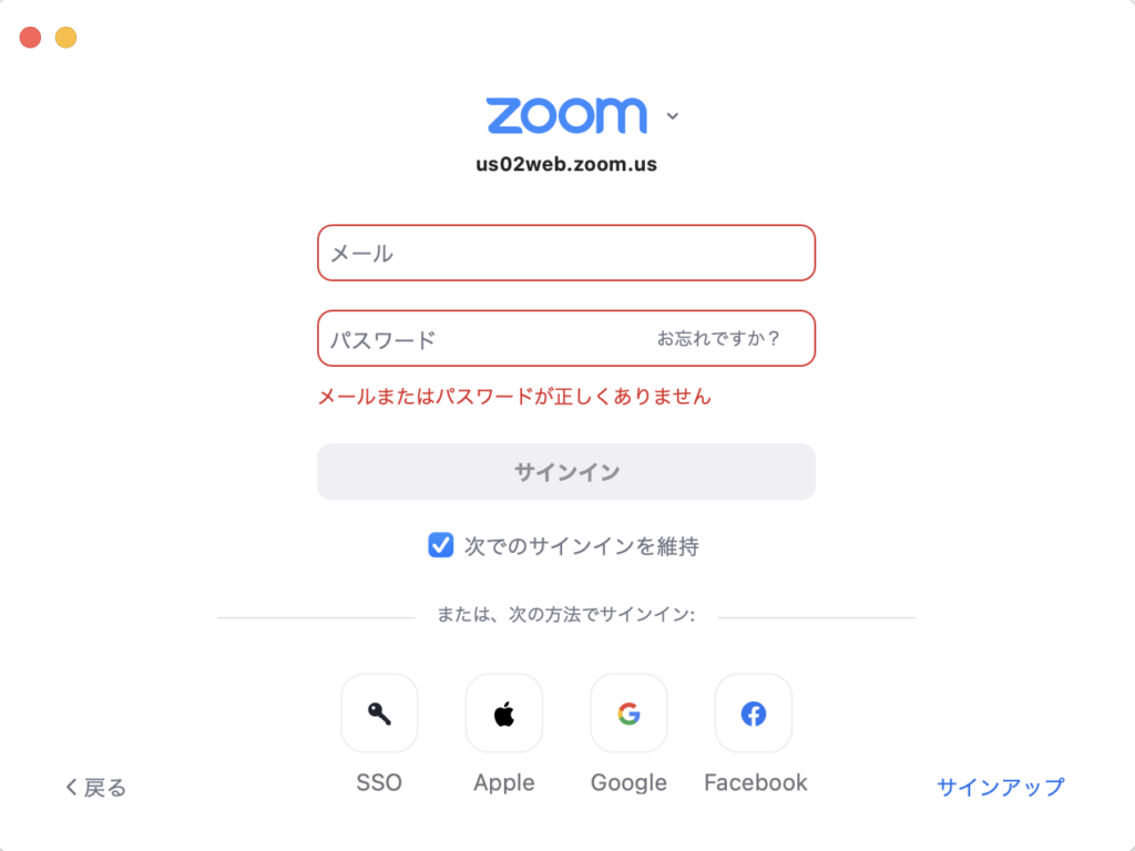Zoomはメールアドレスを登録する以外にも、GoogleアカウントやFaceBookの情報と紐づけることでサインインが可能です。非常に簡単でおすすめの方法なのですが、乗っ取り対策でGoogleやFacebookのアドレスを定期的に変える人は要注意です。Zoomのサインインはアカウント情報ではなくメールアドレスに紐づいているため、登録しているアドレスを変更するとアドレスが違うと見なされサインインができなくなってしまうのです。